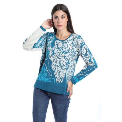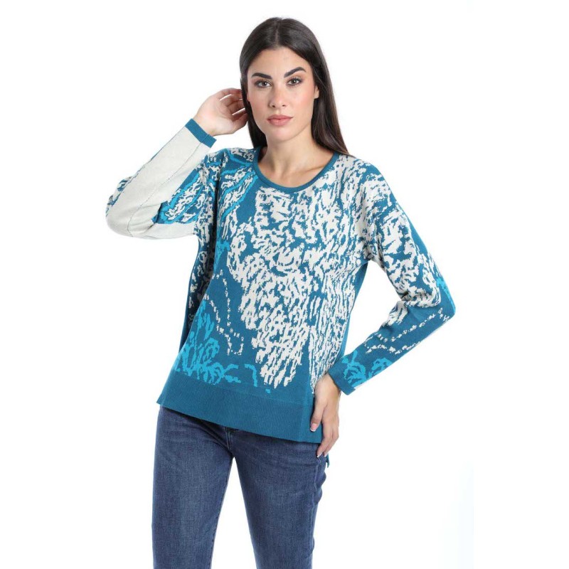 maglia jaquard girocollo con gradino e spacchetti sul fondo 70% viscosa 20% lana 10% sandex