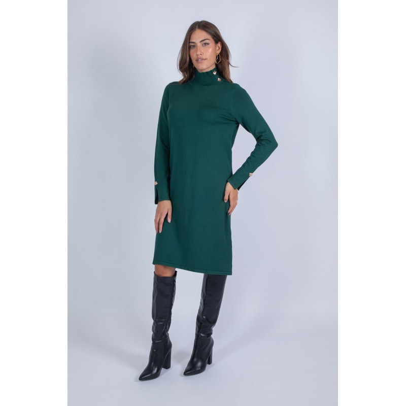 Lasciati avvolgere dall'eleganza dell'abito in maglia modello lupetto, un capo unico arricchito da delicate stelle ricamate che donano un tocco di magia e raffinatezza. Realizzato in un morbido mix di viscosa, lana ed elastan, assicura comfort e vestibilità perfetta, ideale per affrontare con stile le tue giornate più fredde. Un must-have che unisce charme e praticità: non aspettare, aggiungilo subito al tuo guardaroba e illumina ogni occasione con il suo fascino unico! 70% viscosa 20% lana 10% elastan
