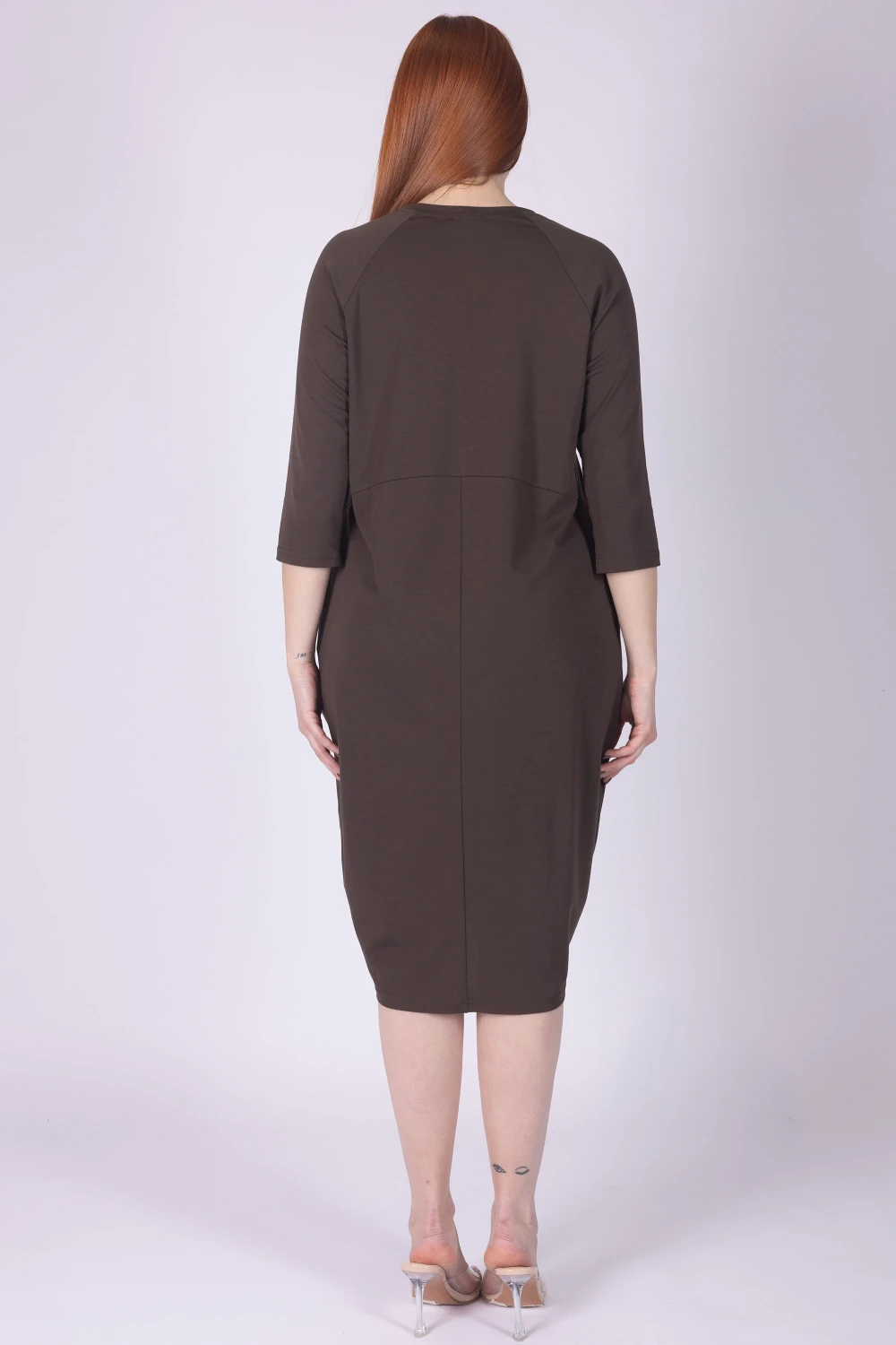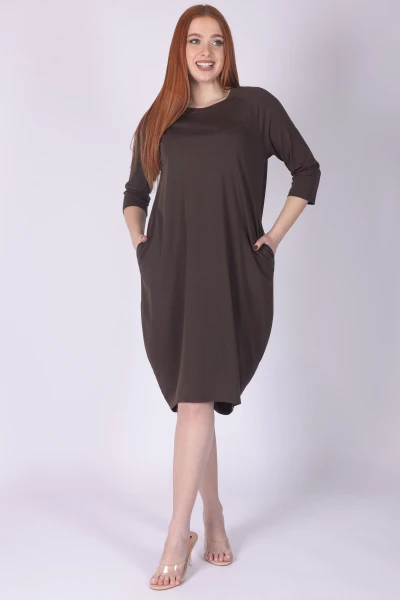 Abito girocollo con manica 3/4 in punto Milano ultra light, caratterizzato da vestibilità a ovetto che dona al capo una linea morbida e contemporanea. Il modello è completato da tasche laterali, dettaglio pratico che aggiunge funzionalità al design.