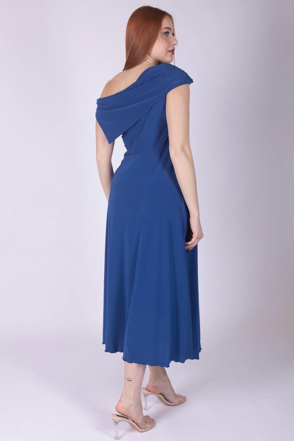 Abito giromanica in tessuto elasticizzato, pensato per valorizzare la silhouette con una linea fluida e armoniosa. Lo scollo morbido cade naturalmente creando un effetto elegante che incornicia il décolleté con delicatezza.