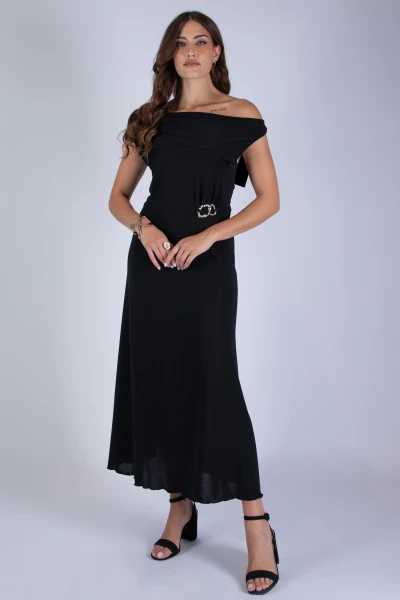 Abito giromanica in tessuto elasticizzato, pensato per valorizzare la silhouette con una linea fluida e armoniosa. Lo scollo morbido cade naturalmente creando un effetto elegante che incornicia il décolleté con delicatezza.