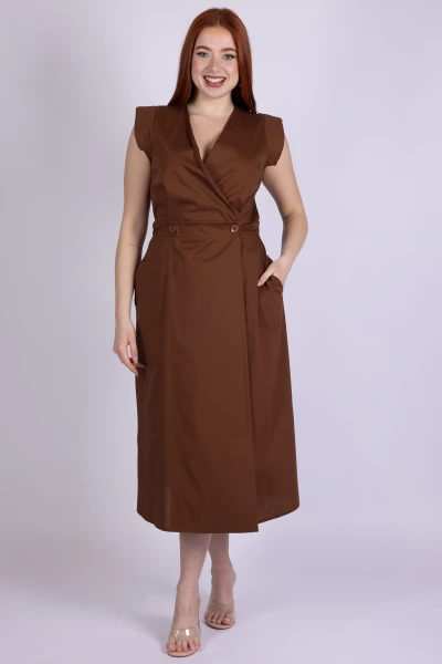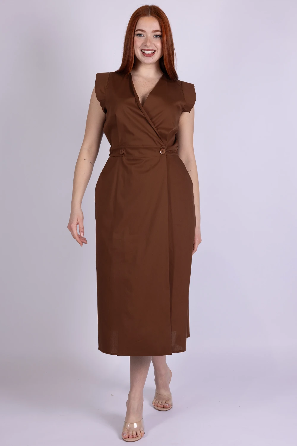 Abito in cotone elasticizzato con scollo a V ad incrocio, caratterizzato da manica ad aletta che dona leggerezza alla linea del capo. Il modello presenta elastico sul retro e chiusura con bottone frontale, dettagli che definiscono il design e rendono la vestibilità pratica. Il tessuto in cotone assicura comfort e naturalezza, creando un abito piacevole da indossare e dal carattere versatile. Non lasciarti scappare l'occasione di aggiungere alla tua collezione un abito che accompagna le forme con naturalezza e comfort! Materiale: 100% cotone.