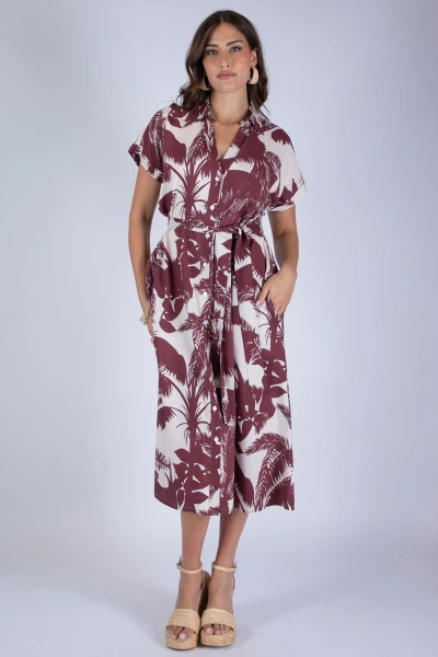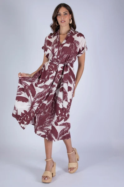 Abito chemisier in viscosa fantasia con mezza manica, ispirato alla classica linea camicia reinterpretata in chiave femminile. La stampa dona vivacità al capo, rendendolo visivamente dinamico e ricco di carattere.
