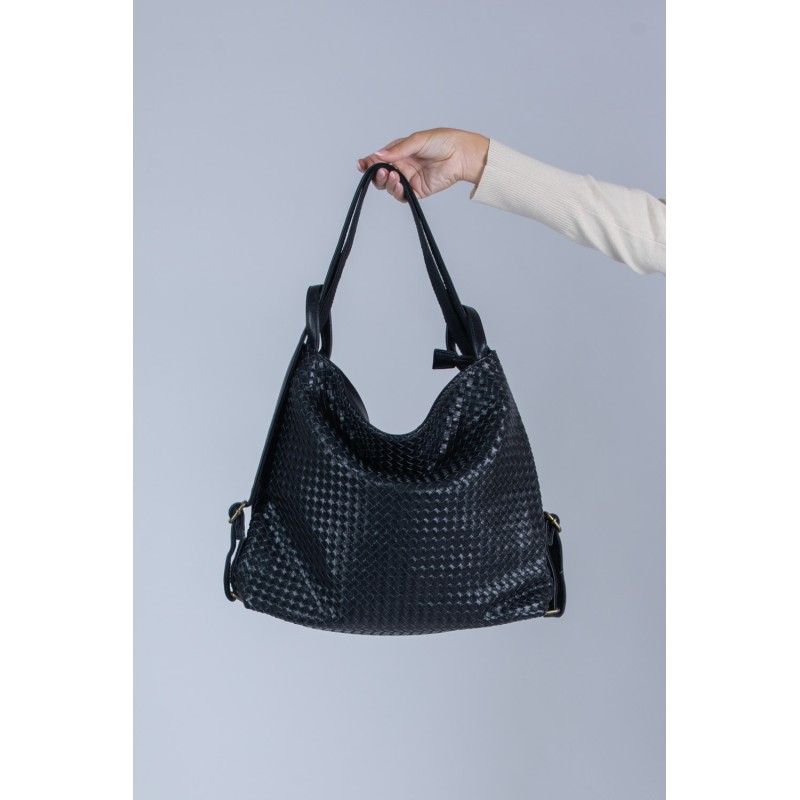 Elegante, pratica e sorprendentemente versatile: questa borsa in eco-pelle intrecciata è pensata per accompagnarti in ogni momento della giornata. Il suo design morbido e capiente, arricchito da una lavorazione effetto intreccio, le dona un aspetto raffinato e contemporaneo.