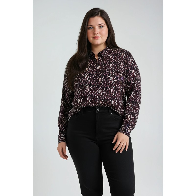Camicia curvy con fantasia vivace e abbottonatura frontale, per una vestibilità comoda e leggera.Un capo versatile e femminile, perfetto per creare look sia casual che più eleganti con un tocco di colore e stile.? Non lasciarti sfuggire questa camicia, lideale per valorizzare la tua silhouette con comfort e personalità! 100% poliestere