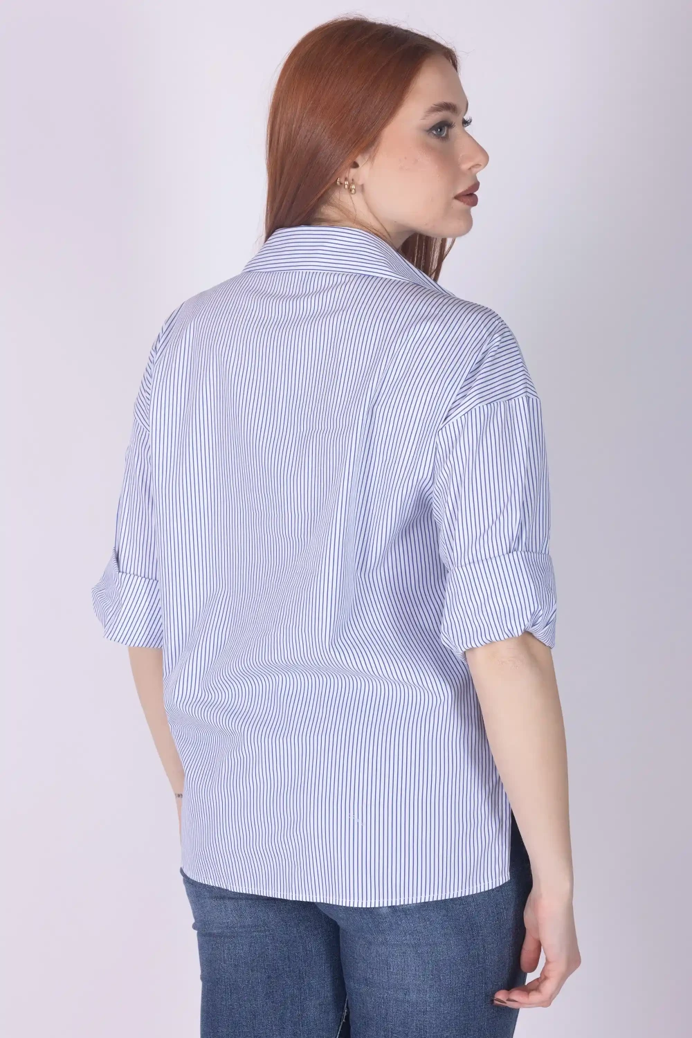 La stampa a righe sottili valorizza il design del modello, mentre il tessuto naturale rende la camicia leggera e piacevole da indossare.