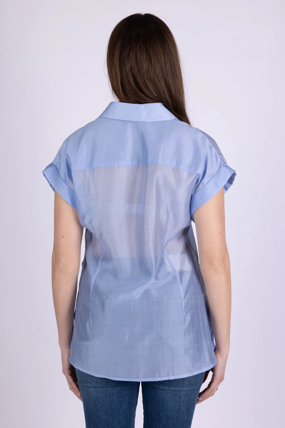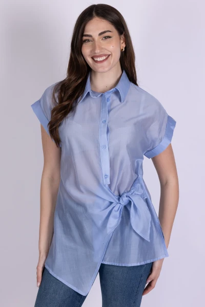 Dai un tocco raffinato ai tuoi abbinamenti con questa camicia in lyocell a mezza manica, un capo leggero e femminile pensato per unire comfort e stile. Il modello è arricchito da risvolto sulle maniche e fiocco frontale, dettagli che valorizzano il design con delicatezza.