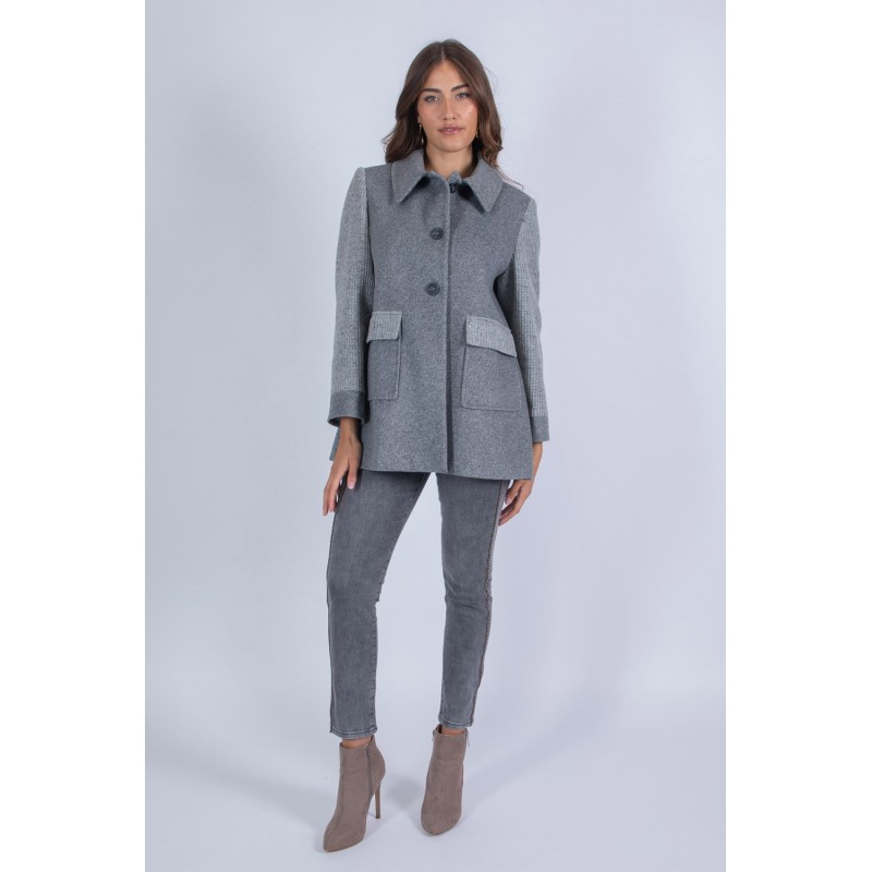 Un cappotto che unisce classe e carattere: questo modello in velour cattura lo sguardo grazie all'abbottonatura frontale pulita e ai dettagli ricercati. Le maniche e le toppe in lana mèlange aggiungono un contrasto materico raffinato e donano al capo un'eleganza contemporanea. Perfetto per le mezze stagioni o da stratificare nei mesi più freddi, è il cappotto ideale per chi cerca stile e personalità in un'unica soluzione. Indossalo con pantaloni sartoriali o jeans per un look sempre curato e distintivo. 75% poliestere 20% viscosa 5% elastan
