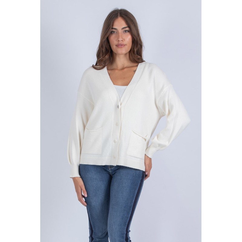 Aggiungi un tocco di eleganza discreta al tuo quotidiano con questo cardigan in maglia dal taglio classico, impreziosito da un raffinato bottone gioiello che dona luce e personalità al capo. La chiusura frontale con abbottonatura e la linea essenziale lo rendono versatile e perfetto sia su outfit casual che su look più formali. Il filato morbido e leggermente elasticizzato avvolge la figura con delicatezza, garantendo una vestibilità comoda ma femminile. Indossalo aperto sopra una blusa o chiuso come top: è un must-have da avere nell'armadio per creare look sofisticati senza sforzo. Scoprilo ora! 56% viscosa 28% poliestere 16% nylon
