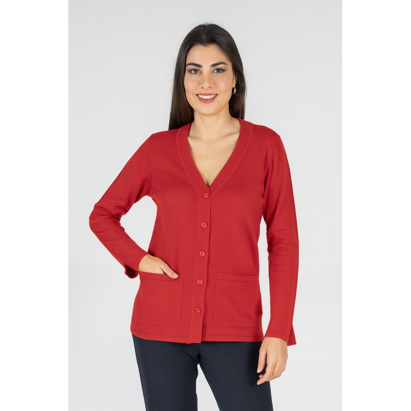 Cardigan basico dal taglio essenziale, pensato per accompagnarti con stile in ogni momento della giornata. Dotato di pratiche tasche frontali e abbottonatura centrale, si distingue per i piccoli spacchetti sui polsi che aggiungono un dettaglio discreto ma raffinato. Un capo versatile e confortevole, perfetto da indossare sopra top e camicie per completare con semplicità e gusto ogni outfit quotidiano. Un must-have da avere sempre nel guardaroba. 70% viscosa 20% lana 10% elastan