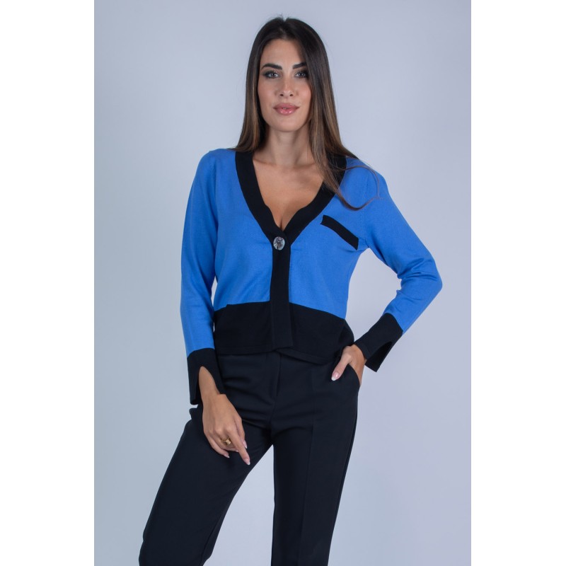 Scopri il fascino del nostro cardigan bicolore modello cropped, un capo essenziale per uno stile moderno e raffinato. Offre una vestibilità confortevole e calda, perfetta per ogni occasione. Il dettaglio del finto taschino e la chiusura frontale con bottone elegante completano il look con un tocco di classe. Non lasciarti sfuggire questo must-have: aggiungilo subito al tuo guardaroba e rinnova il tuo stile con eleganza e praticità! 70% viscosa 20% lana 10% elastan