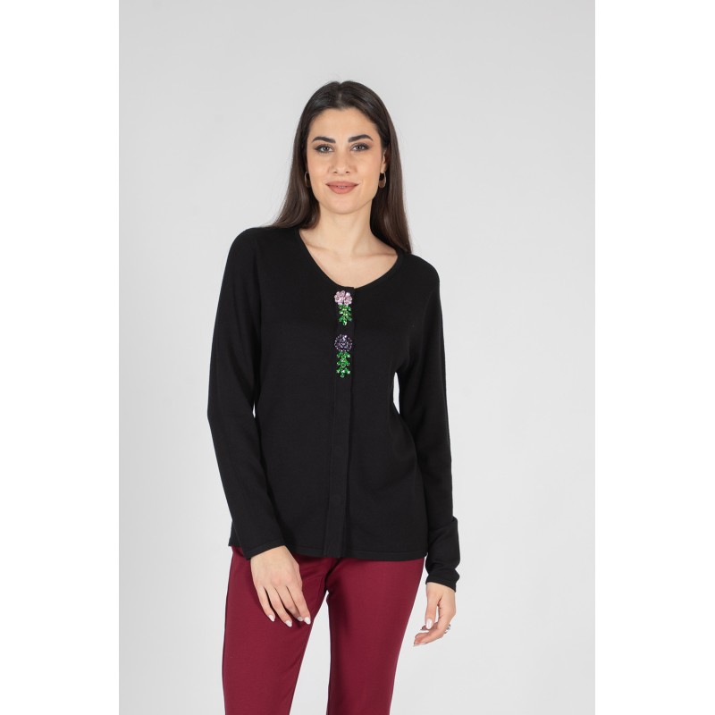 Questo cardigan con scollo Chanel unisce raffinatezza e comfort in un design sofisticato. Realizzato in un morbido mix di viscosa, lana ed elastan, è impreziosito da strass gioiello multicolor che donano un tocco glamour. La chiusura con bottoni a pressione discreta e funzionale, perfetta per uno stile impeccabile. Indossalo aperto o chiuso per trasformare il tuo look con un solo gesto. Un capo must-have per distinguerti con classe! 70% viscosa 20% lana 10% elastan