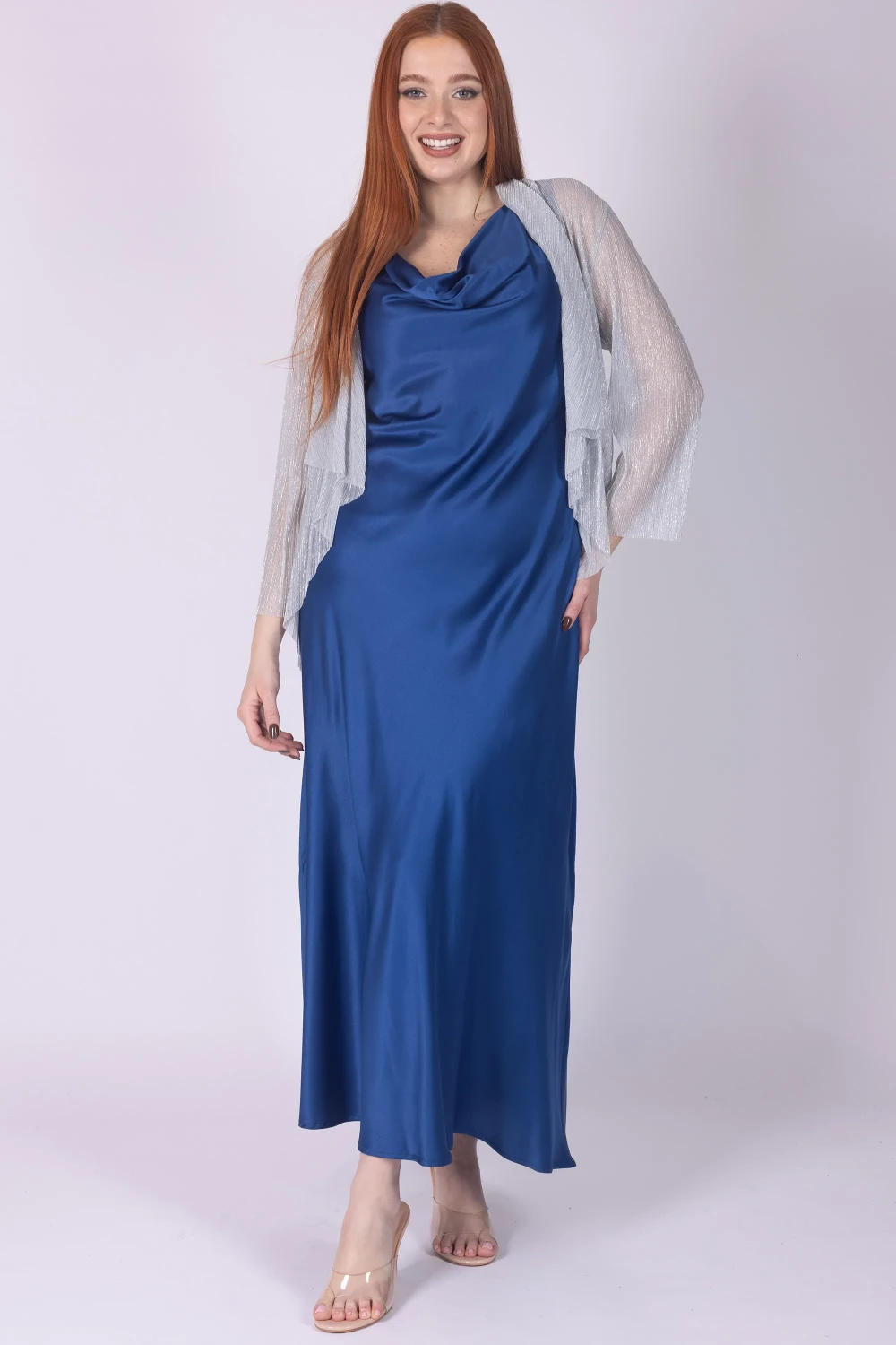 Il design leggero valorizza la fluidità del tessuto, rendendolo perfetto per completare abiti eleganti o outfit da occasione speciale con un tocco luminoso.