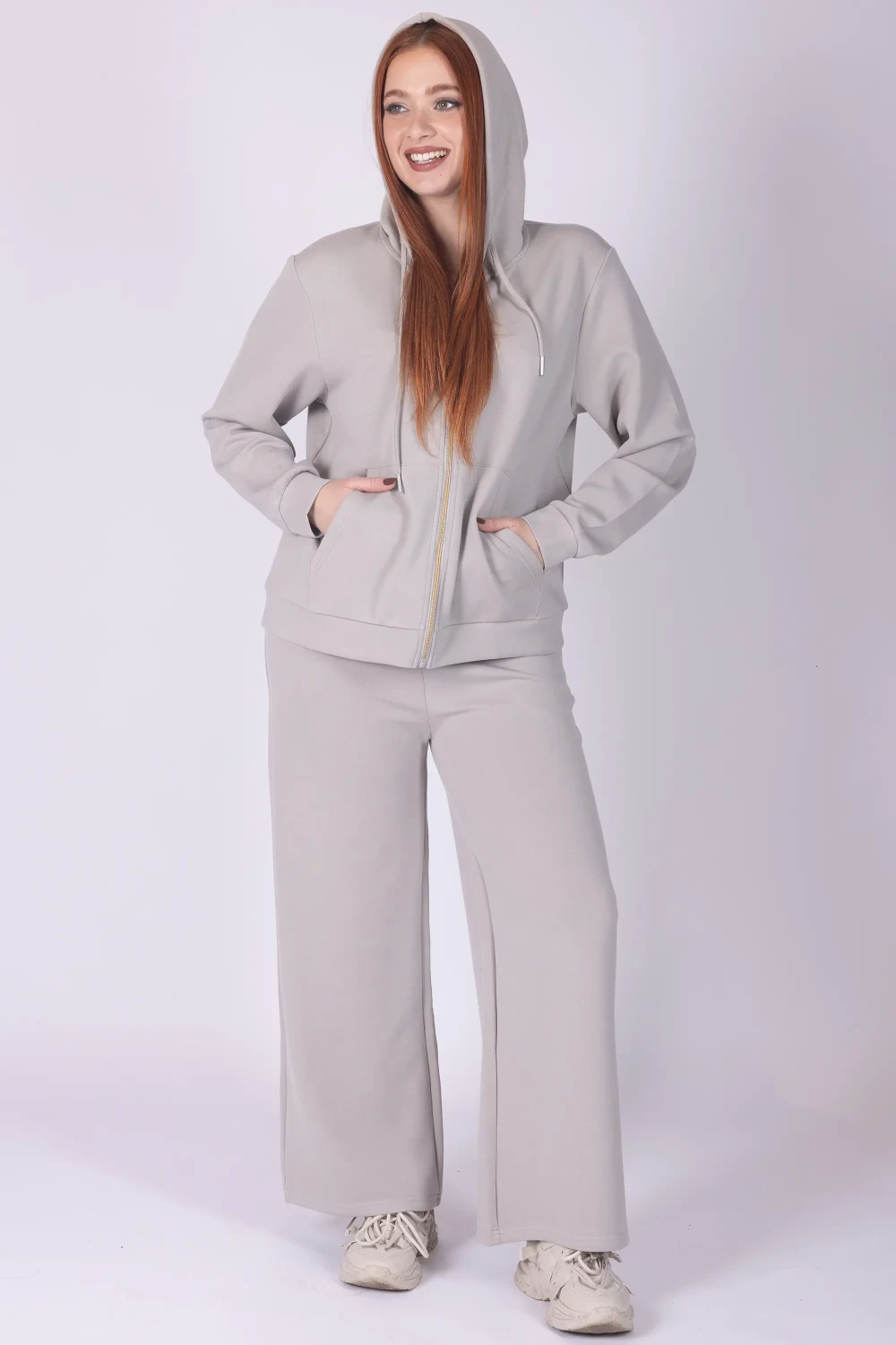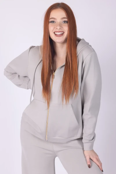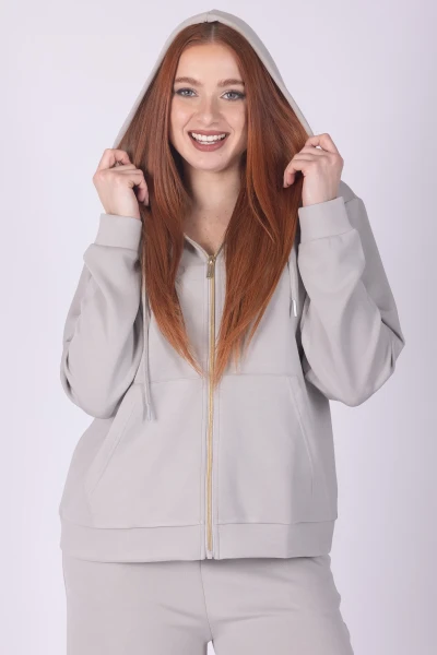 Felpa con cappuccio in viscosa leggera, pensata per offrire comfort e praticità. Il modello è dotato di chiusura frontale con zip e tasche frontali, dettagli funzionali che rendono il capo pratico nellâuso quotidiano.