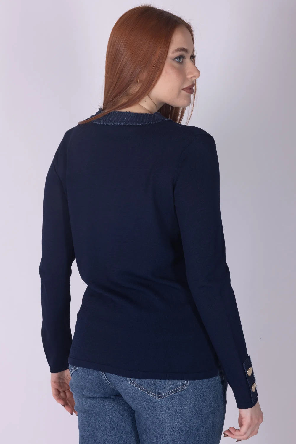 A completare il modello, i bottoncini a forma di cuore aggiungono un tocco delicato e ricercato, valorizzando la linea con un dettaglio distintivo. Il capo ideale per creare look curati e versatili.