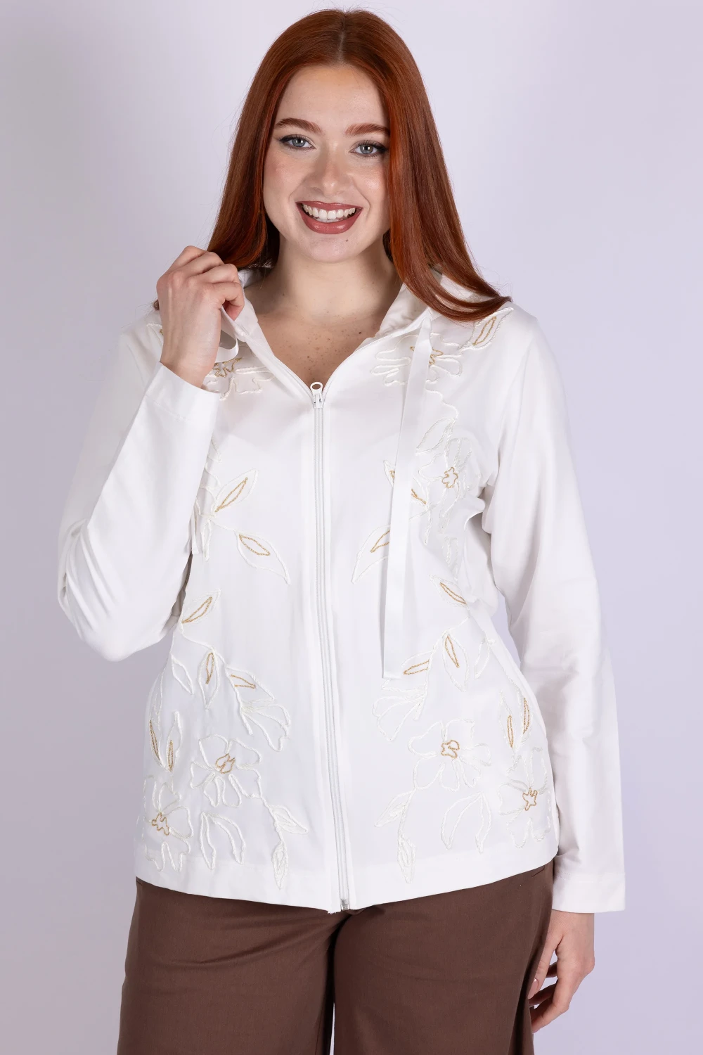 Dai carattere ai tuoi abbinamenti con questa felpa sgarzata ricamata, un capo dal gusto casual arricchito da dettagli originali. Il modello presenta chiusura frontale con zip e cappuccio, elementi pratici che la rendono perfetta per lâuso quotidiano.