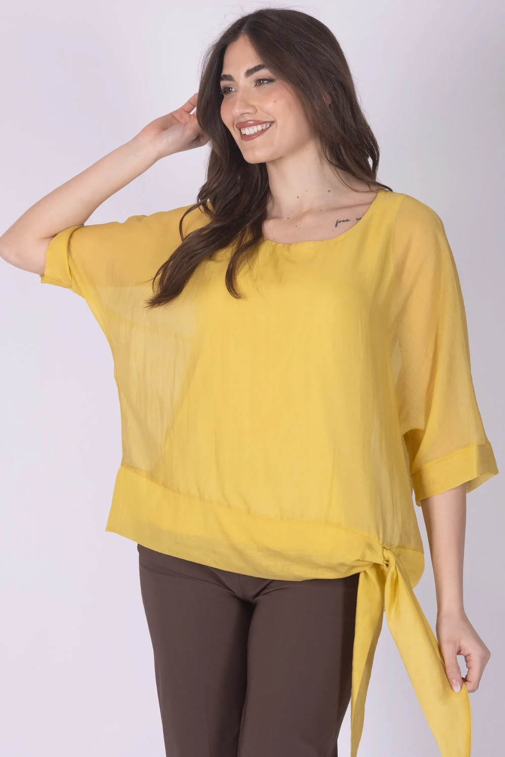 Perfetta da abbinare a pantaloni eleganti, palazzo o jeans.