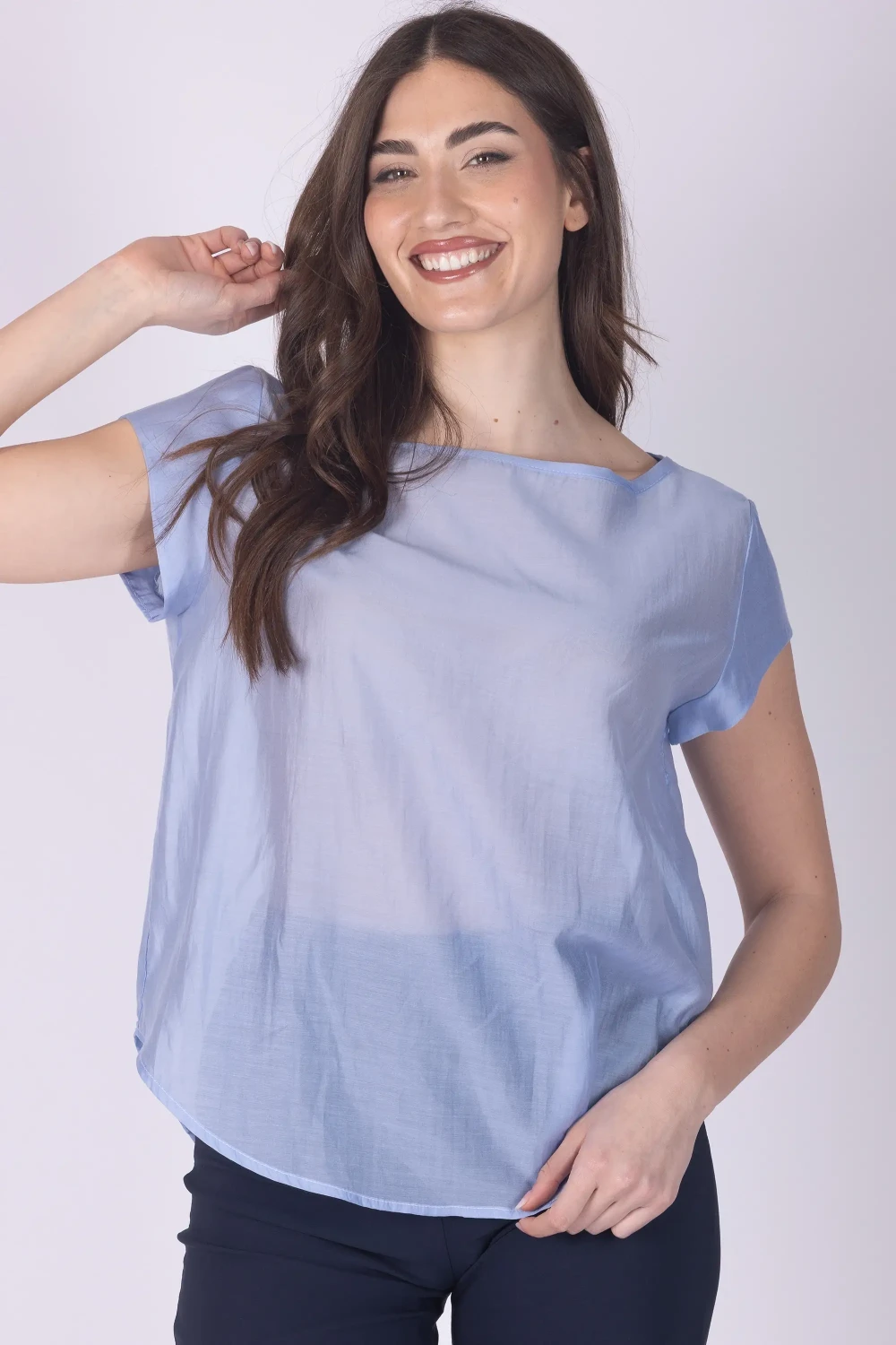 blusa lyocel in tinta unita girocollo manica ad aletta 84% lyocel 16$ poliestere