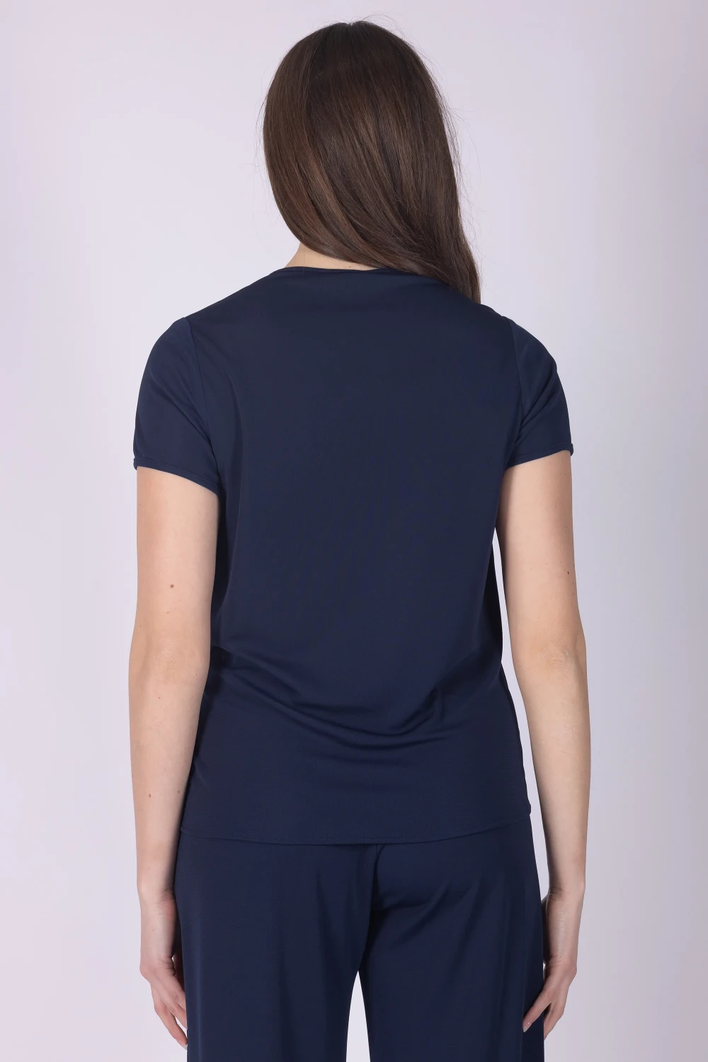 Casacca con scollo a V, caratterizzata da drappeggio sul fianco che crea un effetto morbido sulla linea del capo