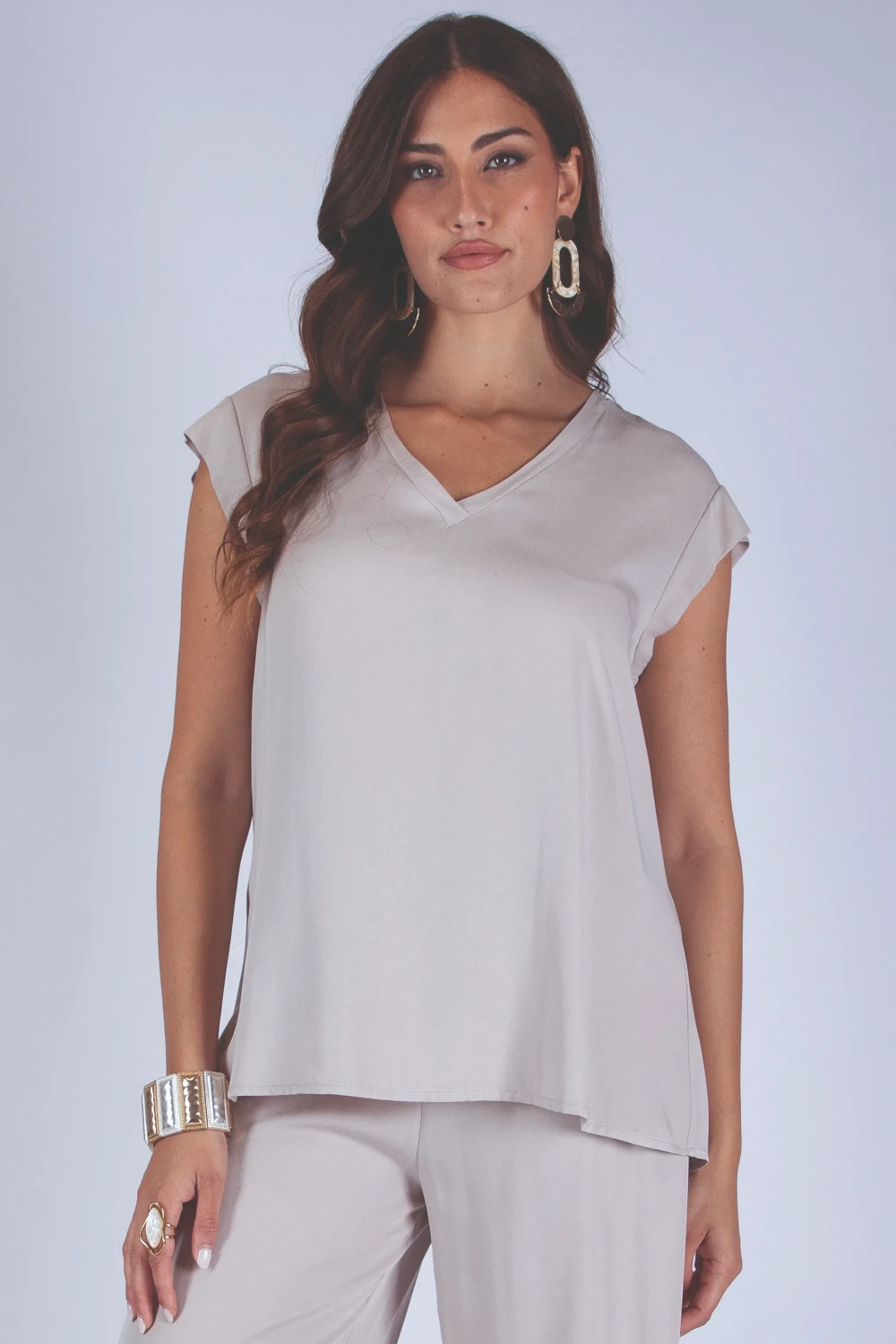 Casacca scollo a V con manica ad aletta, caratterizzata da una linea morbida che cade con naturalezza sul corpo. Il modello è impreziosito da bottoni sul retro centrale, dettaglio che aggiunge un elemento originale e curato al design. Il tessuto in viscosa dona leggerezza e comfort, rendendo questa casacca ideale per accompagnare i movimenti con fluidità. Ordinala ora: un capo che valorizza le forme con semplicità e stile. Materiale: 100% viscosa.