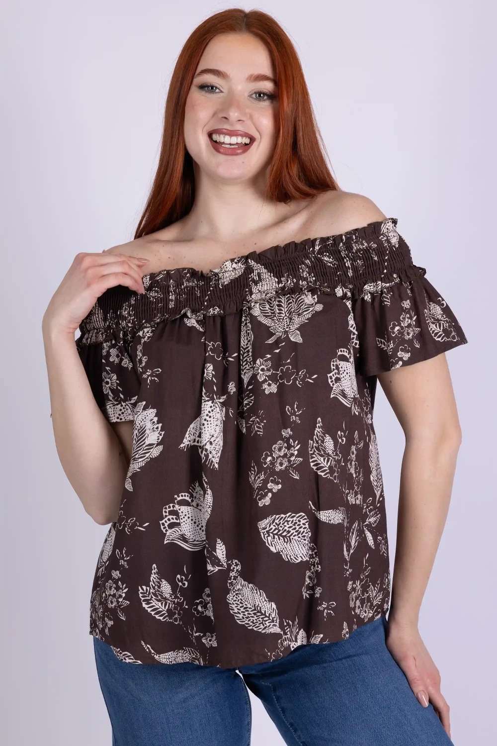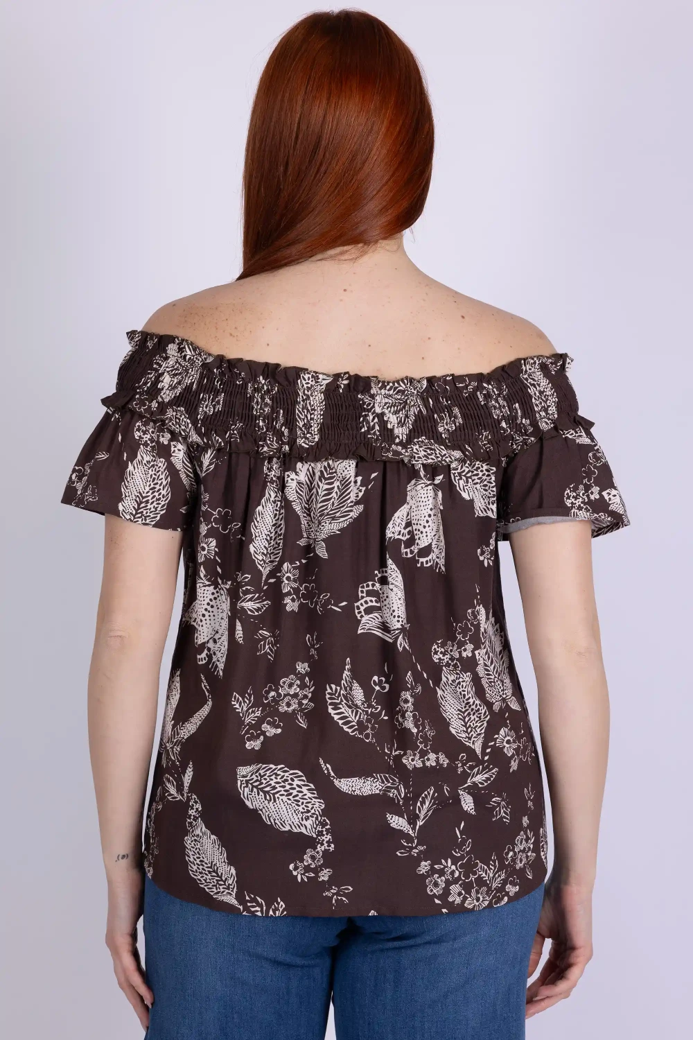 Casacca in modal fantasia con collo shiffer arricciato con elastico, dettaglio che crea un effetto morbido e valorizza la linea del capo. La stampa dona vivacità al tessuto leggero, rendendo questa casacca una proposta dal carattere originale e piacevole da indossare. Sceglila ora e aggiungi un capo pieno di personalità al tuo guardaroba. Materiale: 100% viscosa.