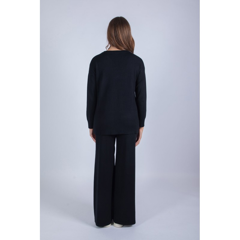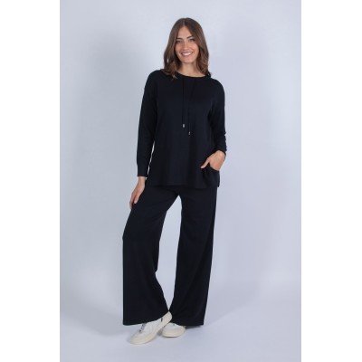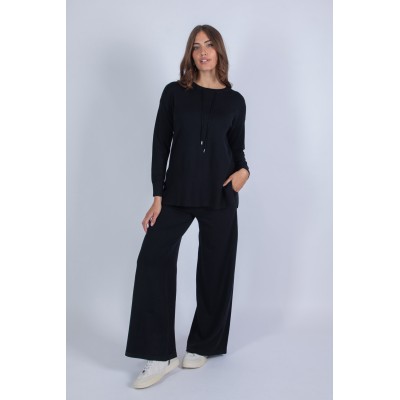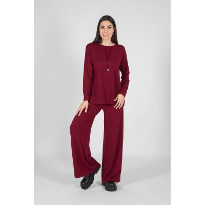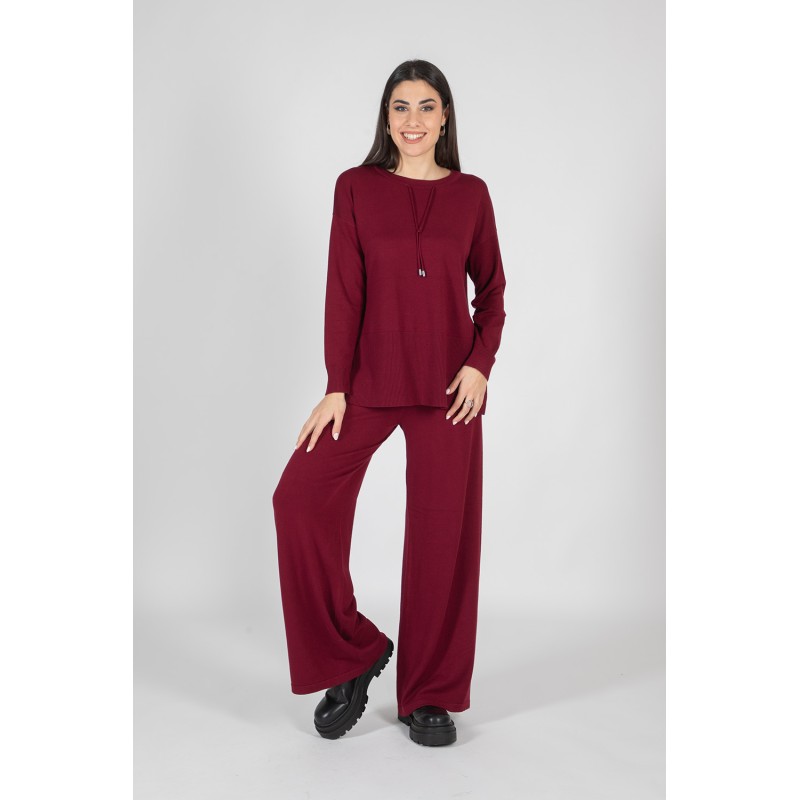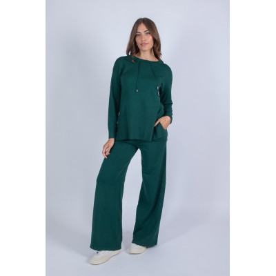 Comodità e stile si incontrano in questo completo in maglia, perfetto per accompagnarti con eleganza nei tuoi momenti di relax o nelle uscite quotidiane. Il set è composto da un pantalone palazzo con tasche ed elastico in vita, per una vestibilità pratica e confortevole, e da una maglia girocollo con laccetti, che aggiunge un dettaglio femminile e moderno. Questo completo offre una piacevole sensazione sulla pelle, un'ottima vestibilità e la giusta dose di calore. Perfetto da indossare insieme o da mixare con altri capi del tuo guardaroba. Scopri il tuo nuovo alleato per uno stile raffinato e rilassato!70% viscosa 20% lana 10% elastan