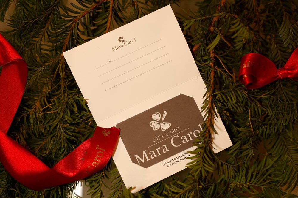 Utilizzabile esclusivamente nei punti vendita diretti Mara Carol, consente di acquistare qualsiasi prodotto del brand. Ha una validità di un anno e deve essere utilizzata in un’unica soluzione.