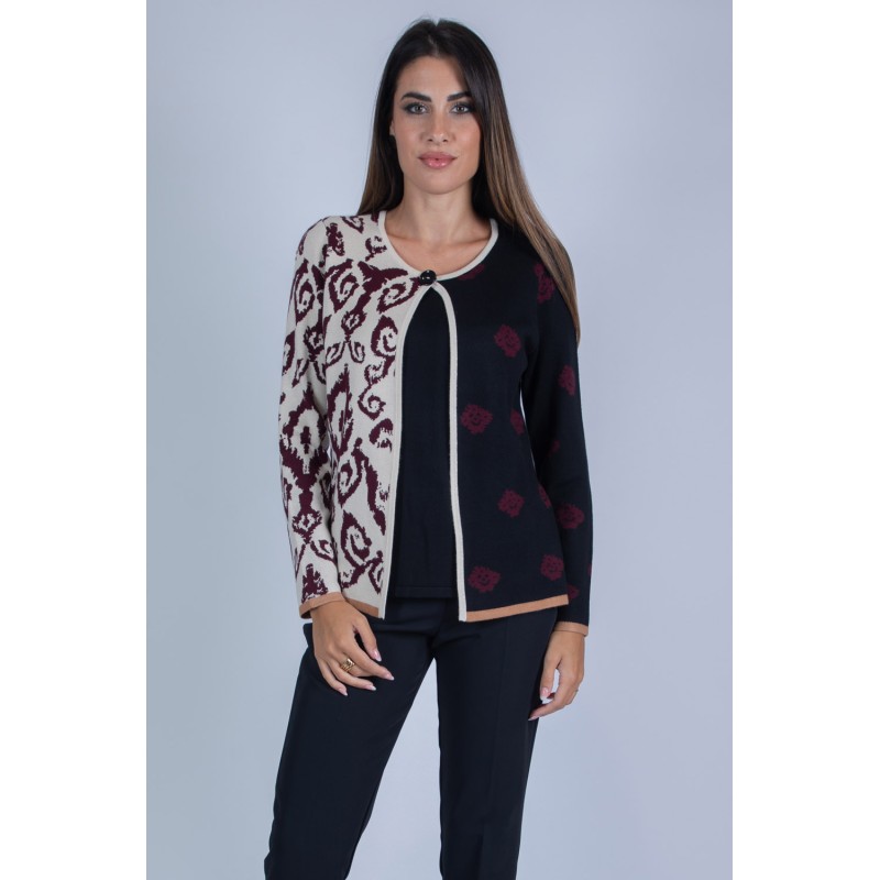 Questo finto twin set con elegante lavorazione jacquard unisce il fascino del classico alla comodità del moderno. Lo scollo Chanel e la chiusura a pressione regalano un tocco bon ton, mentre il mix di viscosa, lana ed elastan assicura comfort e vestibilità impeccabili. Perfetto per dare personalità al tuo look quotidiano o per completare un outfit più ricercato. Provalo e lasciati conquistare dal suo fascino senza tempo! 70% viscosa 20% lana 10% elastan