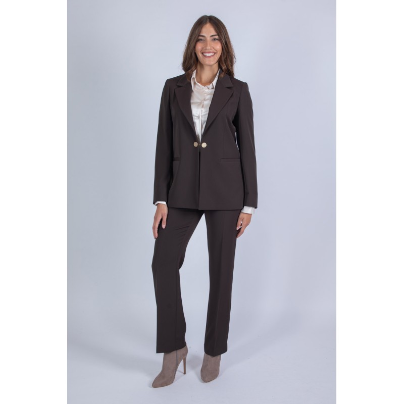 Questa giacca in tessuto tinta unita conquista con il suo design elegante e senza tempo. I bottoni dorati centrali e sui polsi aggiungono un dettaglio prezioso che illumina l'intero capo, esaltandone la linea pulita e raffinata. La struttura leggermente sagomata valorizza la silhouette con discrezione, rendendola ideale sia per il giorno che per la sera. Perfetta sopra una camicia, un abito o un top minimal, questa giacca è il pezzo chiave per un guardaroba sempre impeccabile. Fatti notare con stile: clicca e portala subito con te! 100% poliestere