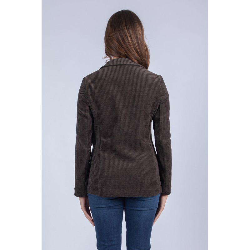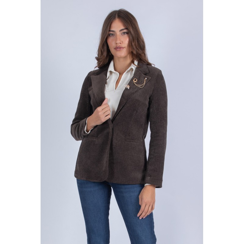 Dona un tocco retrò e sofisticato ai tuoi look con questa giacca in velluto a coste, un vero must-have della stagione. Il tessuto morbido e strutturato valorizza la figura, mentre la chiusura con bottone centrale assicura una vestibilità comoda e femminile. I dettagli fanno la differenza: le spille decorative sul bavero aggiungono un accento glamour e personalizzabile, perfetto per distinguerti con stile. Abbinala a un jeans a vita alta o a un pantalone sartoriale per un outfit elegante ma disinvolto. Scopri il piacere di un capo che unisce comfort, tendenza e carattere. 98% poliestere 2% elastan