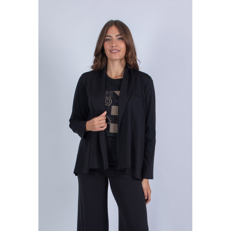Aggiungi un tocco di eleganza rilassata al tuo look con questa giacca in punto Milano ultra light, perfetta per chi ama la raffinatezza senza rinunciare al comfort. Il modello sciallato, con le sue linee fluide e avvolgenti, dona un effetto sofisticato e disinvolto, ideale per completare qualsiasi outfit con stile.