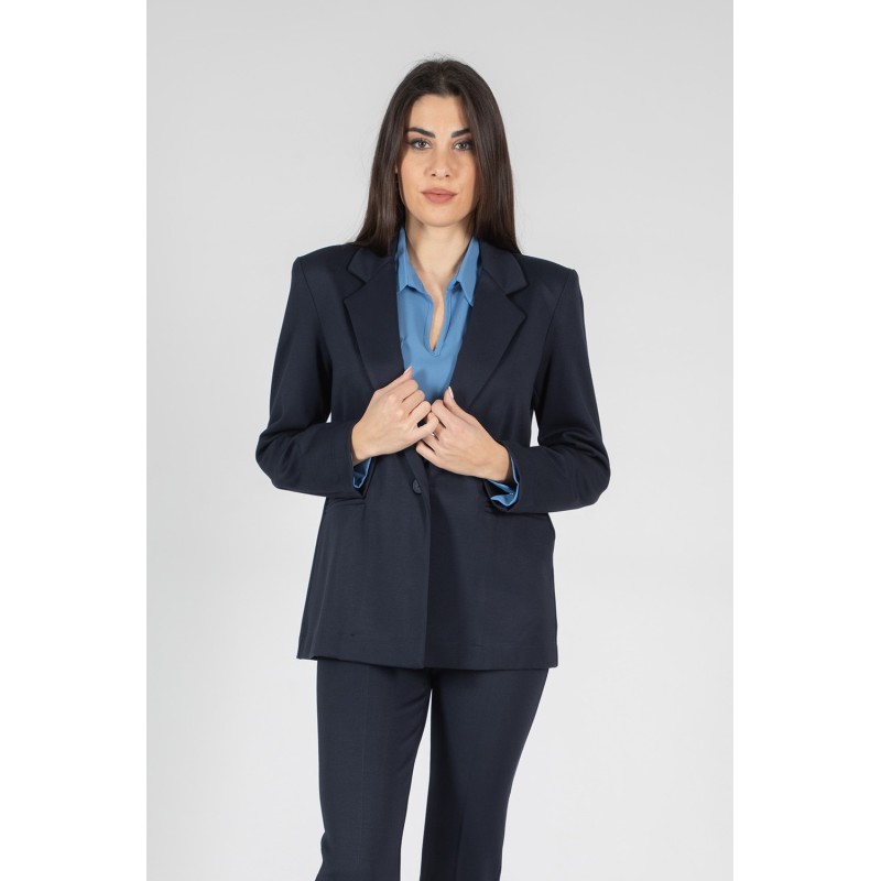 Giacca in punto milano con trama diagonale, caratterizzata da una chiusura frontale con bottone. Un capo versatile e raffinato, perfetto per completare look sia formali che casual con un tocco moderno. Non lasciarti sfuggire questa giacca, aggiungila subito al tuo guardaroba per un'eleganza senza tempo! 67% viscosa 28% nylon 5% elastan