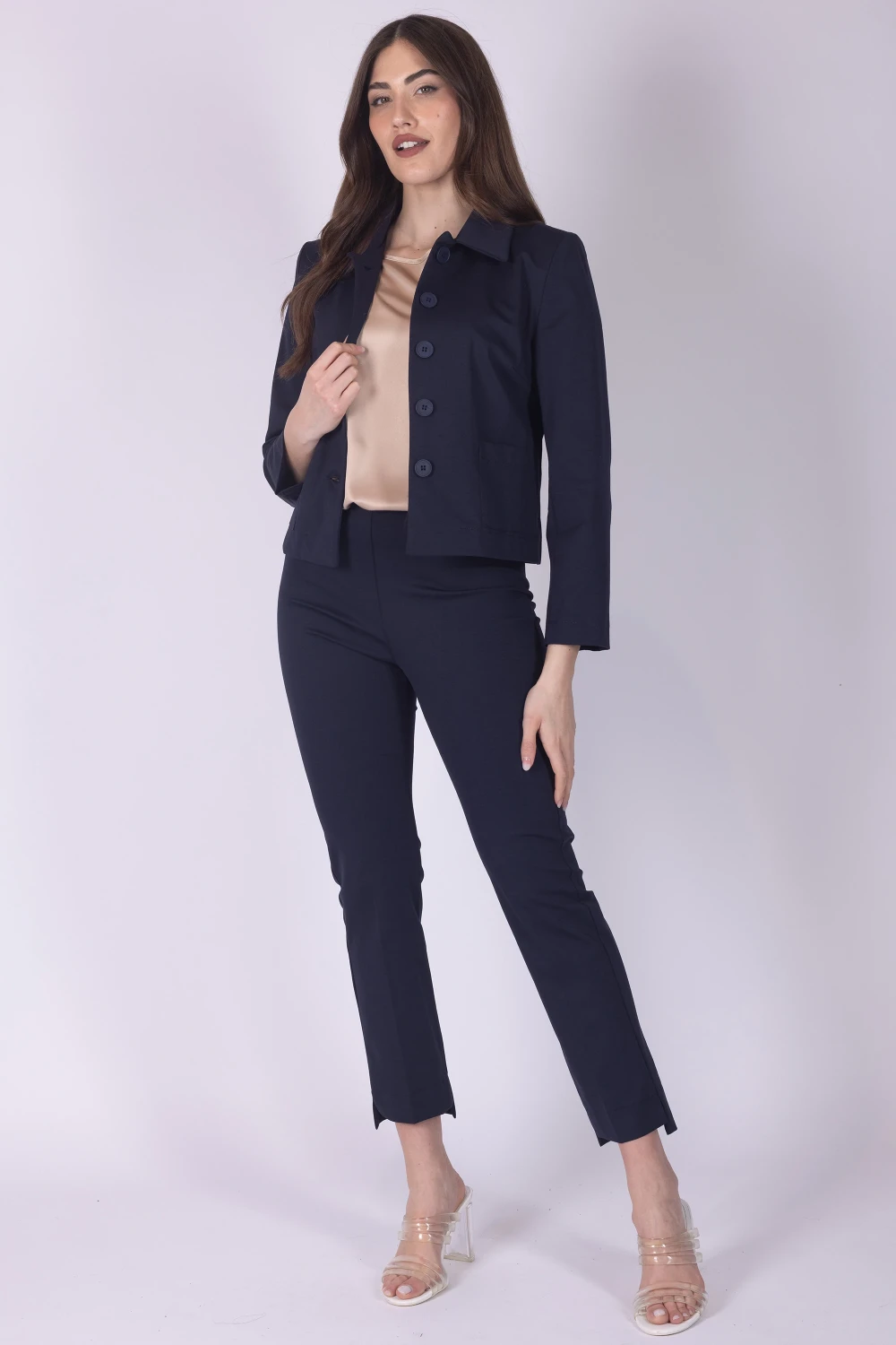 Giacca caratterizzata da tasche a toppa frontali che aggiungono praticità e definiscono il design del capo. Il modello presenta collo a poli, dettaglio che dona un aspetto curato e contemporaneo. La linea pulita valorizza la struttura della giacca, rendendola una proposta versatile e facile da abbinare. Non lasciartela sfuggire: aggiungi al carrello questa giacca che farà parte della tua collezione unica ed elegante! Materiale: 84% modal, 16% poliestere.