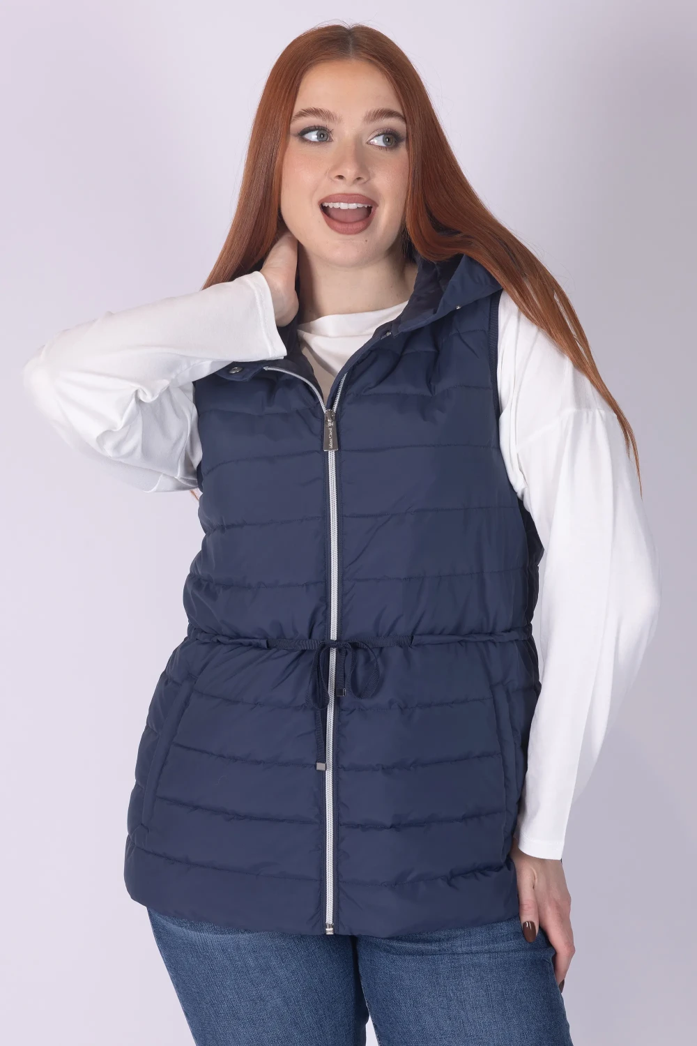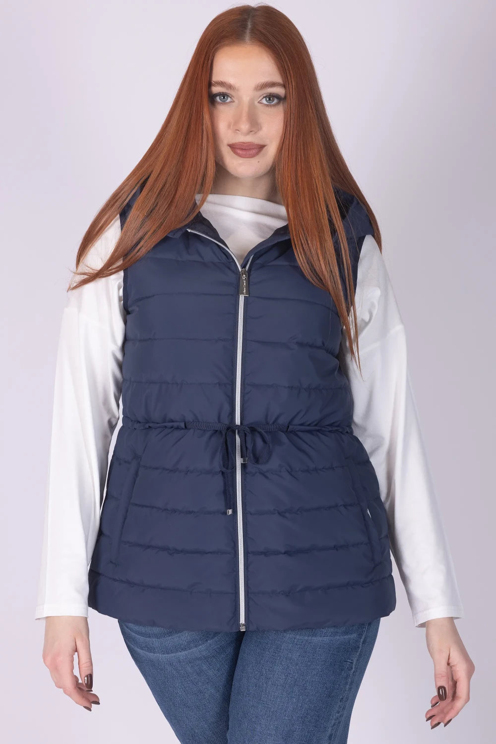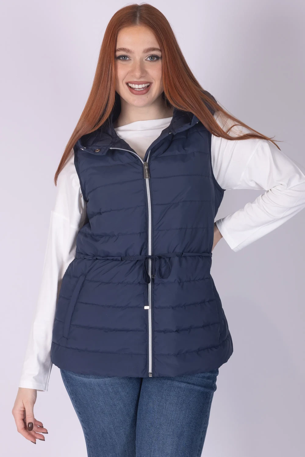 Gilet con cappuccio caratterizzato da plissé in gros-grain, dettaglio che dona movimento e un tocco originale al design del capo. Il modello è completato da chiusura frontale con zip, elemento pratico che rende il gilet facile da indossare.