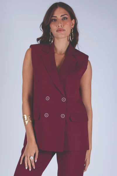 Giacca smanicata a doppio petto caratterizzata da pattine sulle tasche che valorizzano il design del capo. Il modello è completato da spalline imbottite, dettaglio che definisce la linea e dona struttura alla giacca.