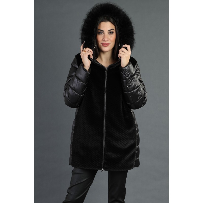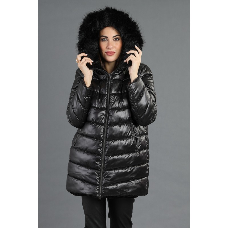 Scopri il nostro giubbotto reversibile ( 100% poliestere) che unisce eleganza e funzionalità! Con chiusura frontale a zip, questo capo è arricchito da profili in ecopelliccia e un collo removibile in ecopelliccia, perfetto per un tocco di classe.
