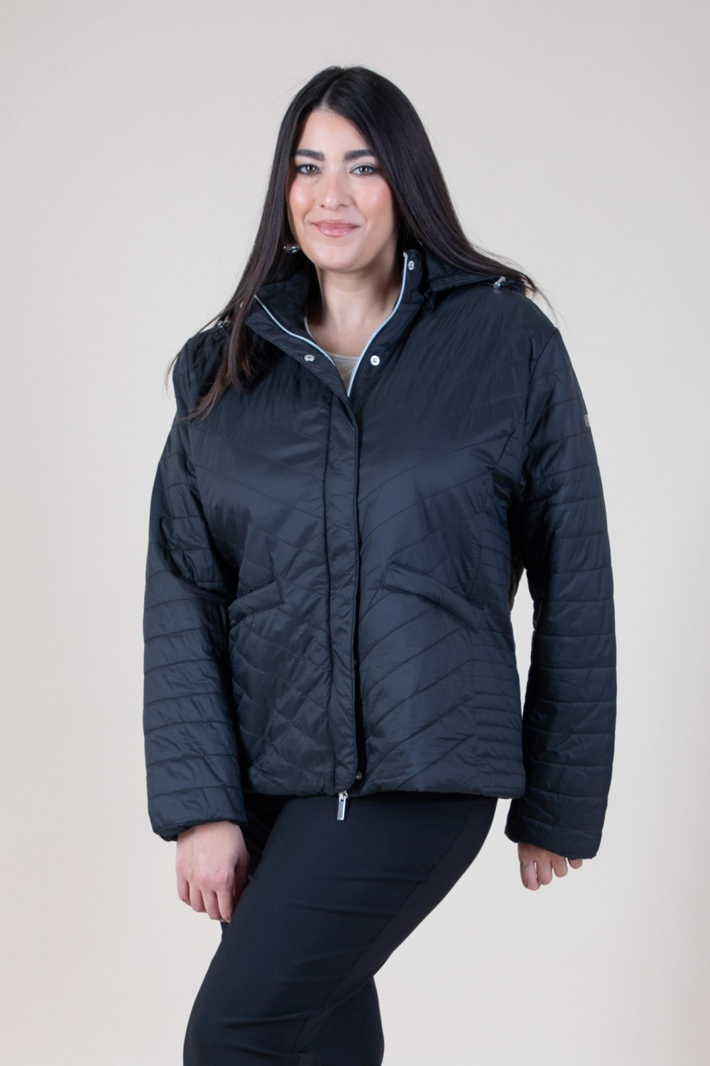 Affronta la primavera con il giubbotto curvy trapuntato, un capo perfetto per le mezze stagioni che unisce comfort e raffinatezza. Il design trapuntato esalta la silhouette con un tocco moderno, mentre il taglio curvy garantisce una vestibilità impeccabile. Il cappuccio removibile lo rende estremamente versatile, adattandosi a ogni esigenza di stile e praticità. Le tasche frontali aggiungono funzionalità, mentre la chiusura con zip e bottoni assicura protezione e un look sofisticato. Perfetto da abbinare a jeans e sneakers per un outfit casual o a pantaloni eleganti per un tocco più ricercato. Non rinunciare al mix perfetto di leggerezza e stile! Acquistalo ora e preparati alla primavera con eleganza! 100% poliestere
