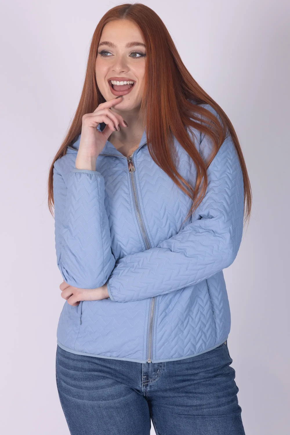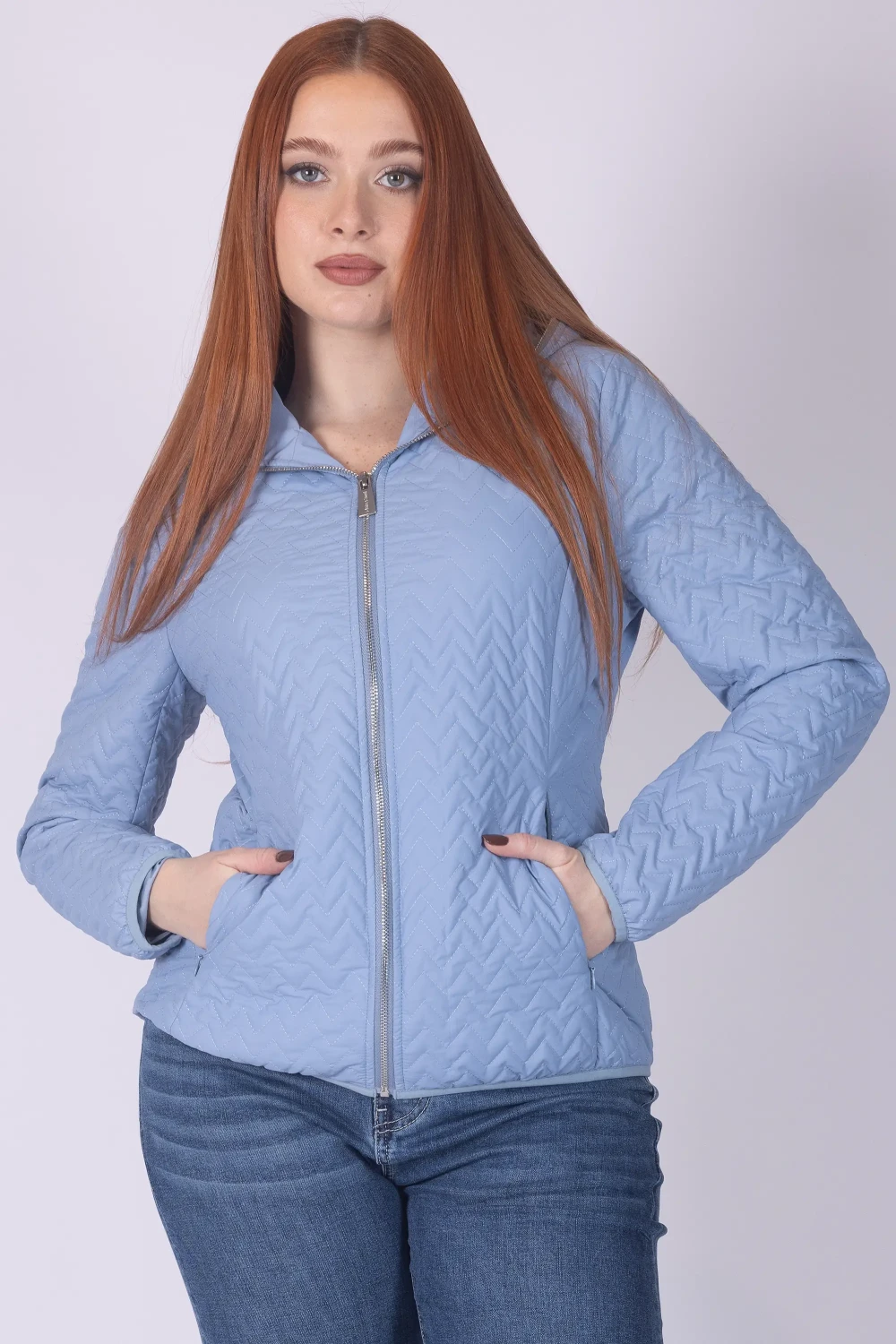 Giubbotto caratterizzato da motivo zig zag che dona al capo un effetto grafico originale. Il modello è dotato di cappuccio e chiusura frontale con zip, dettagli pratici che completano il design.
