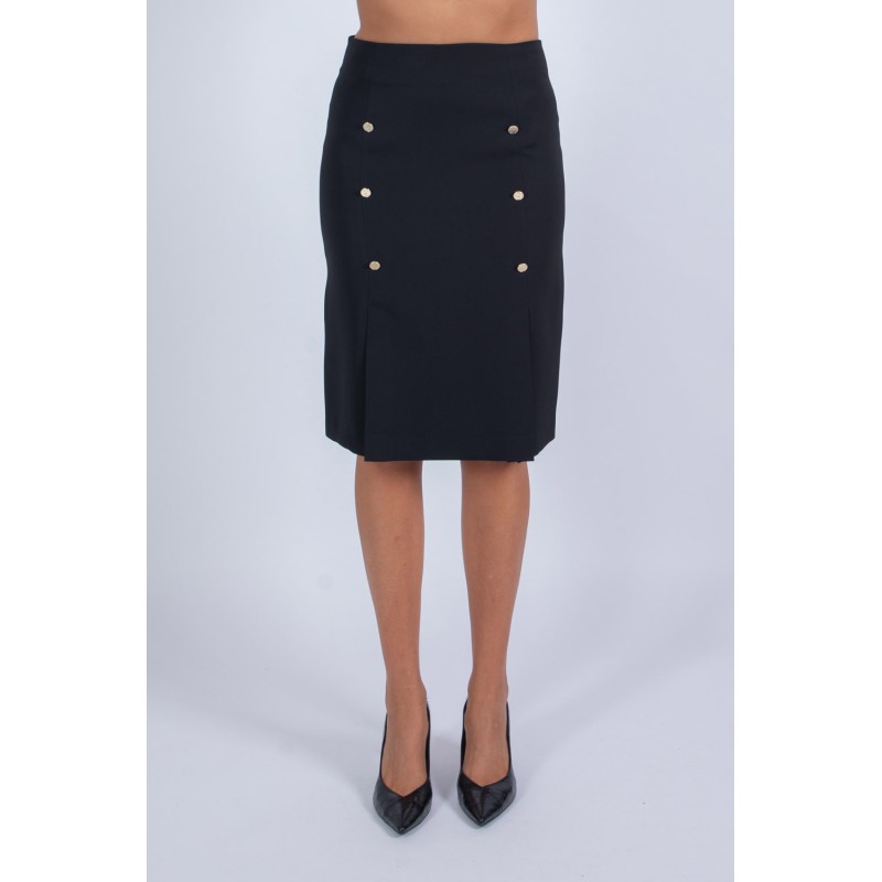Scopri il fascino senza tempo di questa gonna tinta unita, impreziosita da bottoni dorati e da delicati spacchi sul fondo che donano movimento e femminilità alla silhouette, è perfetta per accompagnarti dal giorno alla sera con stile e praticità. Non lasciartela scappare, aggiungila subito al tuo look di stagione. 100% poliestere