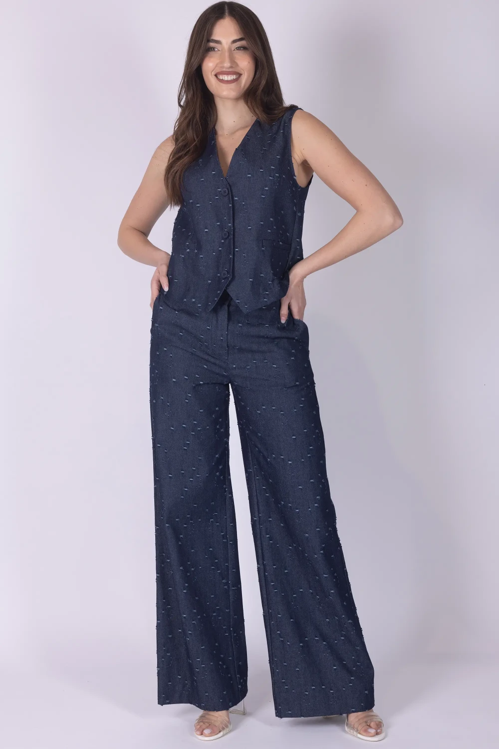 Dai un tocco deciso ai tuoi abbinamenti con questi jeans a gamba larga modello palazzo, realizzati in tessuto effetto graffiato per un look dal carattere contemporaneo. La linea ampia dona movimento al capo e rende il modello pratico e attuale.