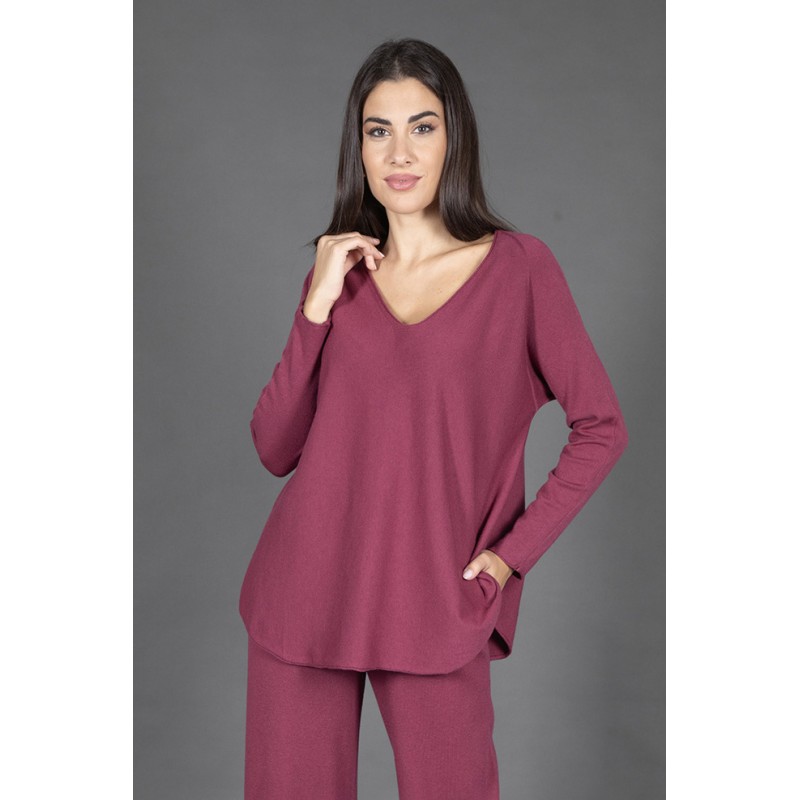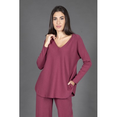 Il design con scollo a V non solo esalta la tua figura, ma aggiunge anche un tocco di eleganza e femminilità. La texture morbida e leggera si adatta splendidamente al corpo, assicurando una vestibilità comoda che ti accompagnerà per tutto il giorno. Che tu la indossi con jeans per un look casual o con una gonna per un outfit più raffinato, questa maglia si presta a molteplici abbinamenti, offrendoti infinite possibilità di stile.