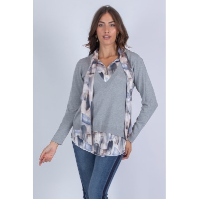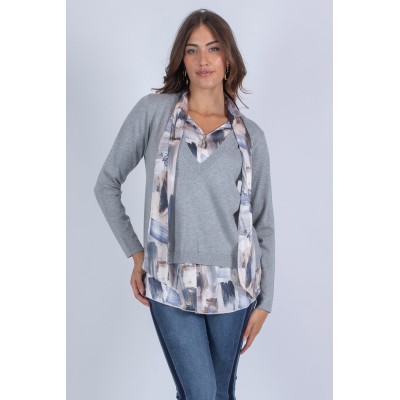 Maglia raffinata con dettagli in tessuto fantasia effetto finta camicia su fondo e scollo, che donano un tocco di originalità e freschezza al capo. Un mix perfetto tra comfort e stile, ideale per chi cerca un look sofisticato ma versatile. Da abbinare facilmente per un outfit che si distingue in ogni occasione. Aggiungi subito questa maglia al tuo guardaroba e lasciati conquistare dalla sua eleganza discreta! 70% viscosa 20% lana 10% elastan