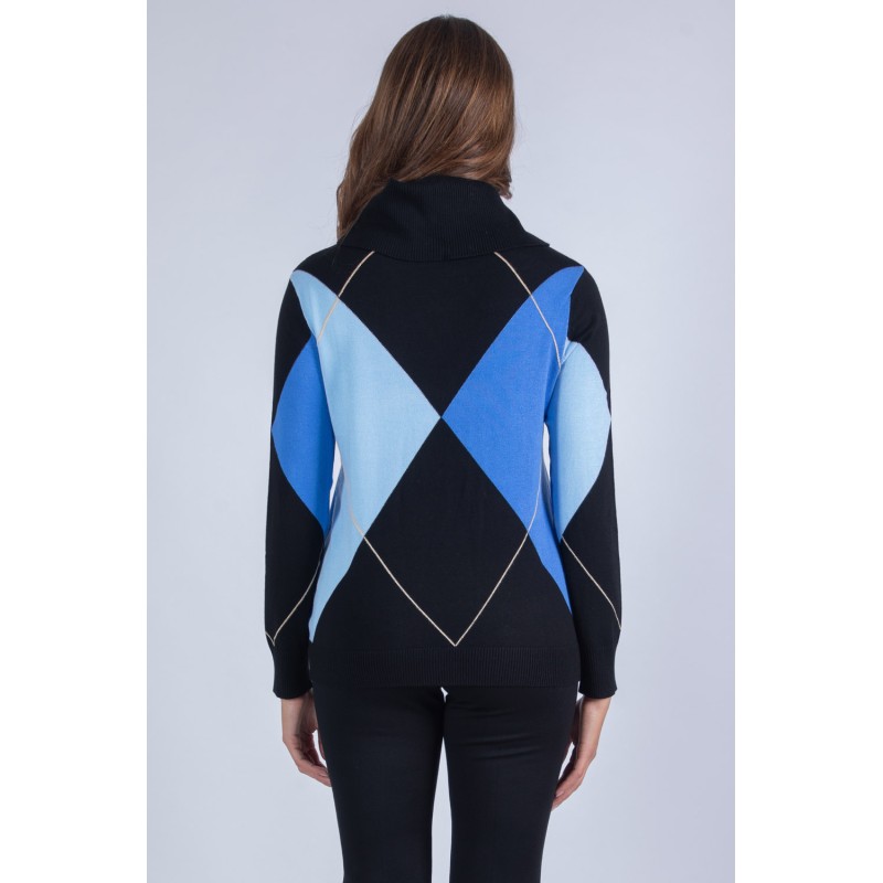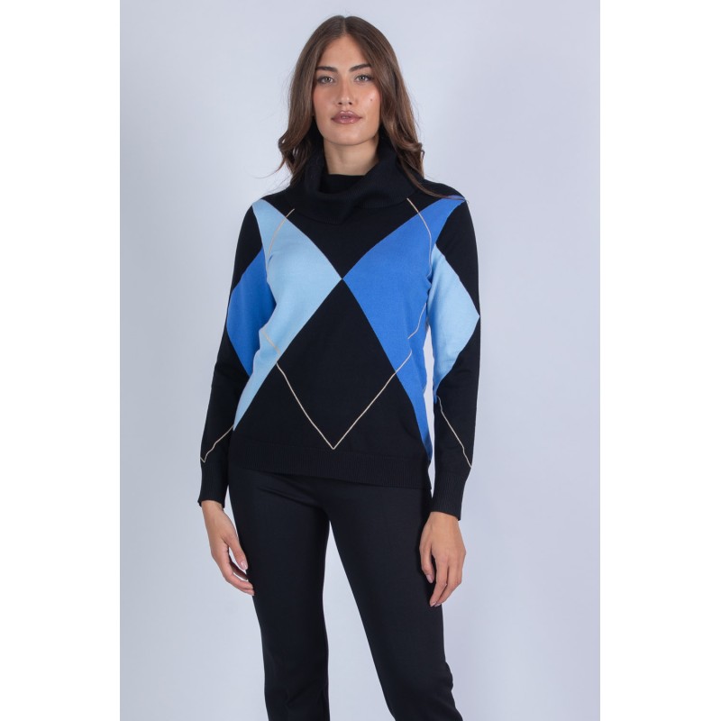 Maglia dal collo a ciambella, arricchita da una raffinata lavorazione ad intarsio geometrico che dona un tocco moderno ed elegante. Morbida e avvolgente, è perfetta per chi cerca comfort senza rinunciare allo stile. Aggiungila al tuo guardaroba per un look sofisticato e versatile, ideale da indossare in ogni occasione. Non lasciartela scappare! 70% viscosa 20% lana 10% elastan