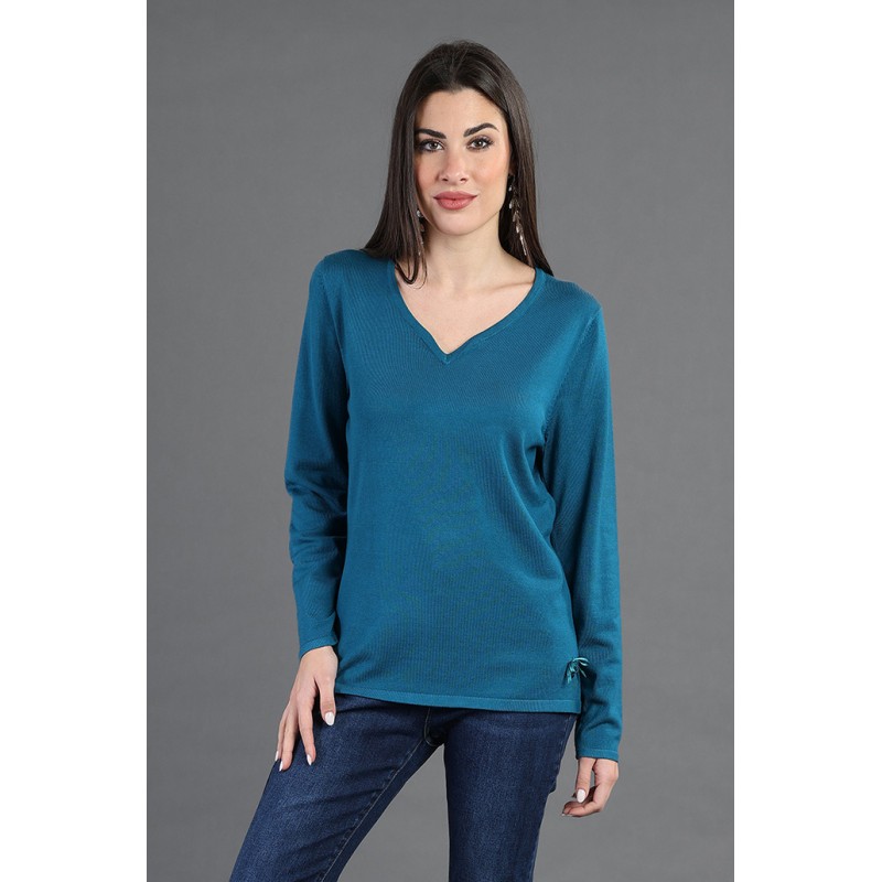 Maglia basica con scollo a cuore, pensata per valorizzare la silhouette con delicatezza e femminilità. Il taglio essenziale è arricchito da uno scollo romantico, perfetto per aggiungere un tocco di eleganza al tuo look quotidiano. Un capo versatile da indossare da solo o sotto giacche e cardigan, ideale per ogni occasione. Lineare ma con personalità: l'alleata perfetta del tuo guardaroba. 70% viscosa 20% lana 10% elastan