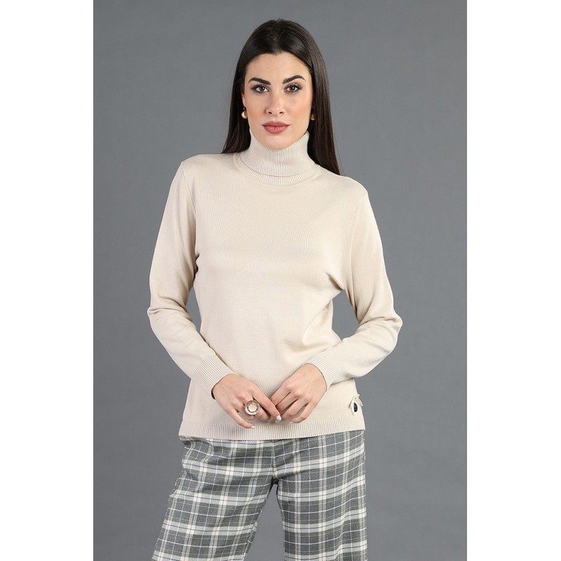 Maglia basica con collo alto, ideale per affrontare la stagione con stile e comfort. Il design essenziale la rende perfetta da abbinare a qualsiasi outfit, mentre il collo alto aggiunge un tocco di raffinatezza e protezione nelle giornate più fresche. Morbida al tatto e piacevolmente calda, è un capo must-have da avere sempre a portata di mano. Semplice, elegante, indispensabile! 70% viscosa 20% lana 10% elastan