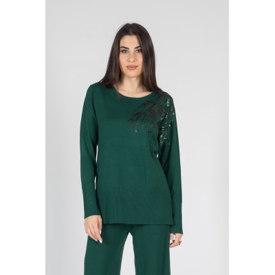 Maglia girocollo elegante, arricchita da un raffinato ricamo in paillettes che dona un tocco di luce discreta, mentre gli spacchi sul fondo aggiungono movimento e femminilità. Ideale per le tue occasioni speciali o per rendere unico il look di tutti i giorni. Non aspettare, scegli subito questa maglia versatile e sofisticata! 70% viscosa 20% lana 10% elastan