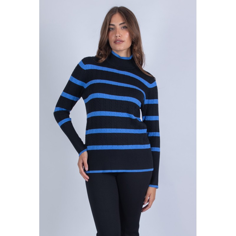 Lupetto dal design raffinato con una ricercata lavorazione a trecce e un vivace gioco di righe che dona movimento e carattere al look. Il collo alto avvolgente è perfetto per le giornate più fresche, mentre la composizione in viscosa, lana ed elastan assicura comfort e vestibilità. Un capo ideale per aggiungere un tocco grafico e sofisticato ai tuoi outfit quotidiani. Indossalo con denim o pantaloni tailored per un'eleganza senza sforzo. 70% viscosa 20% lana 10% elastan