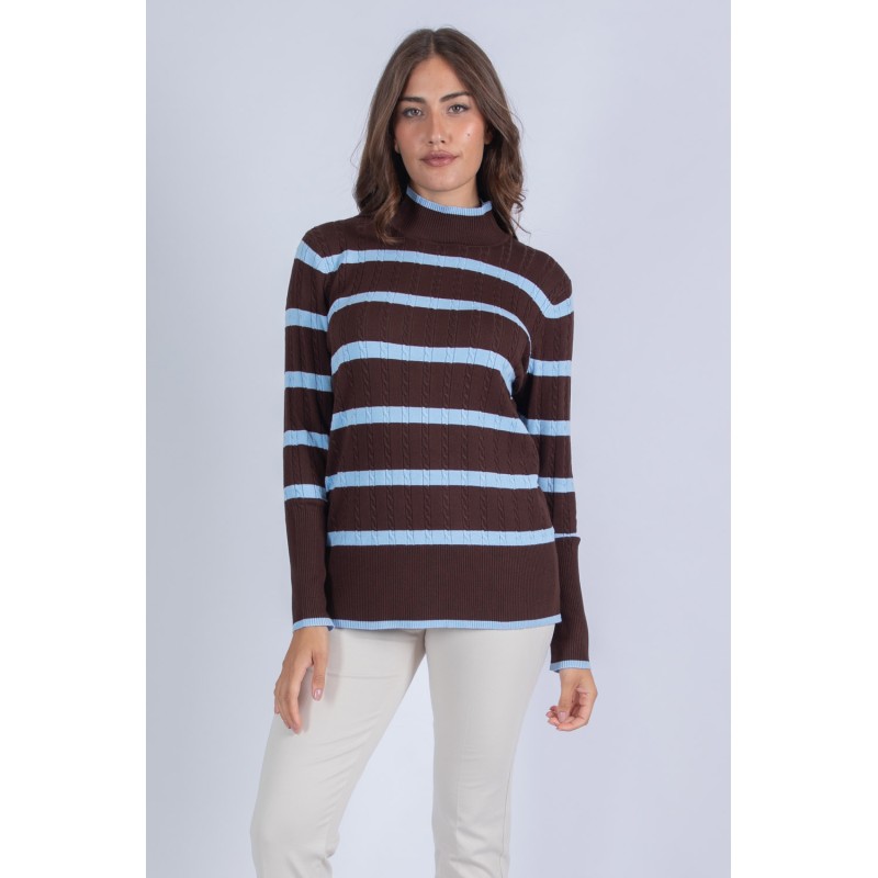 Lupetto dal design raffinato con una ricercata lavorazione a trecce e un vivace gioco di righe che dona movimento e carattere al look. Il collo alto avvolgente è perfetto per le giornate più fresche, mentre la composizione in viscosa, lana ed elastan assicura comfort e vestibilità. Un capo ideale per aggiungere un tocco grafico e sofisticato ai tuoi outfit quotidiani. Indossalo con denim o pantaloni tailored per un'eleganza senza sforzo. 70% viscosa 20% lana 10% elastan