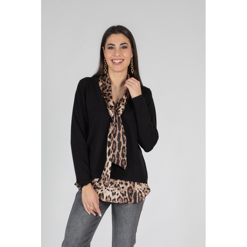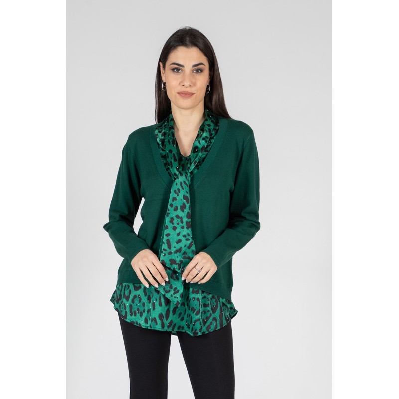 Lasciati conquistare da questa maglia dallo scollo a V, realizzata in un morbido mix di viscosa, lana ed elastan. Il tessuto animalier dona un tocco audace e sofisticato, mentre gli strass applicati su fondo e collo aggiungono una scintillante eleganza, perfetta per chi ama distinguersi con stile. Un capo versatile che illumina ogni outfit, dal giorno alla sera. Non perdere l'occasione di arricchire il tuo guardaroba con questo dettaglio prezioso: acquistala ora e risplendi in ogni occasione! 70% viscosa 20% lana 10% elastan