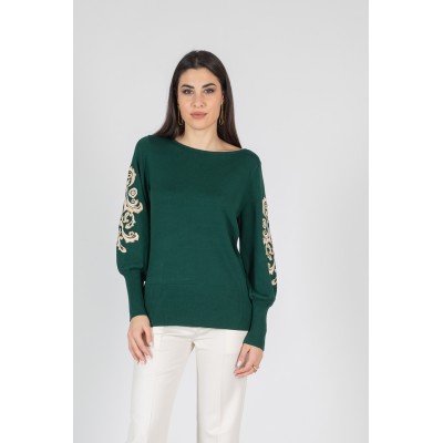 Questa maglia girocollo è un vero must-have grazie alle maniche a palloncino impreziosite da delicati ricami, che aggiungono un tocco di eleganza e femminilità al capo. Perfetta per chi cerca uno stile raffinato ma contemporaneo, da indossare in ogni occasione. Rinnova il tuo look con questo dettaglio unico: non aspettare, aggiungila subito al carrello! 70% viscosa 20% lana 10% elastan